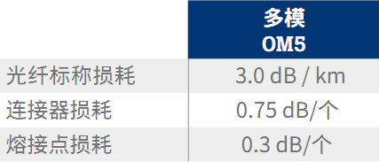 表1. 基于TIA和ISO标准的OM5多模光纤和标准连接器的损耗指标。